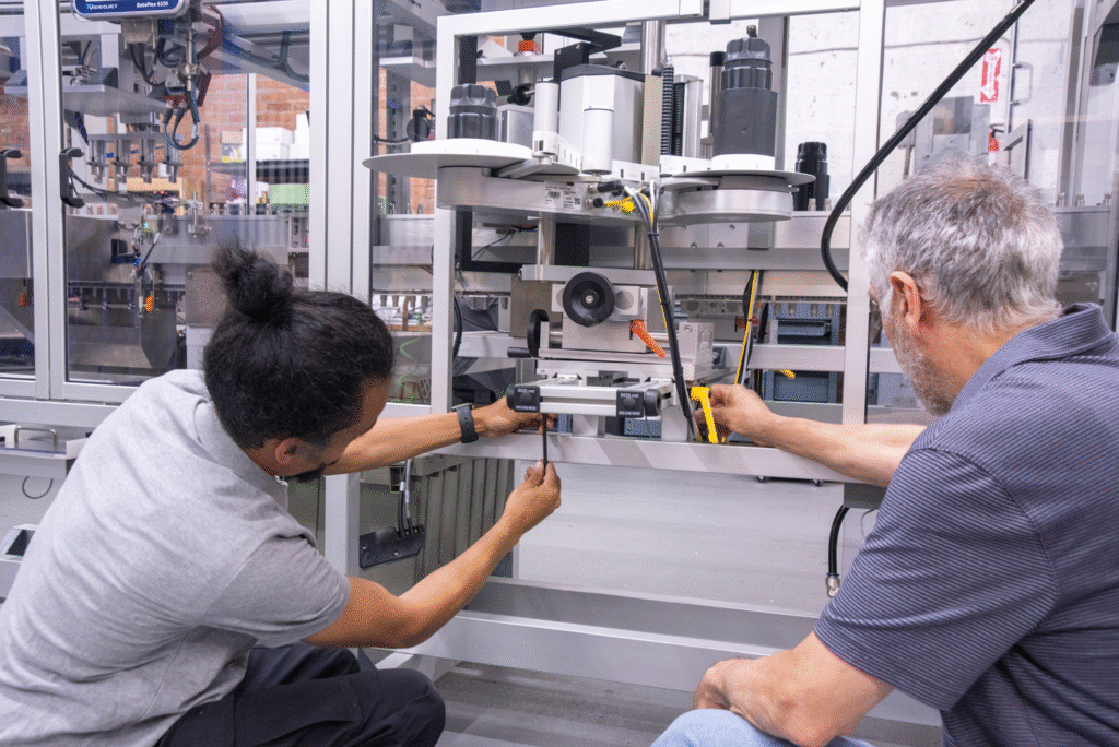Two TurboFil engineers, Eli Uriel and Jairo Gomez, assembling one of the company’s equipment solutions, which help its pharmaceutical customers manufacturer, contain and deliver liquid drug products
